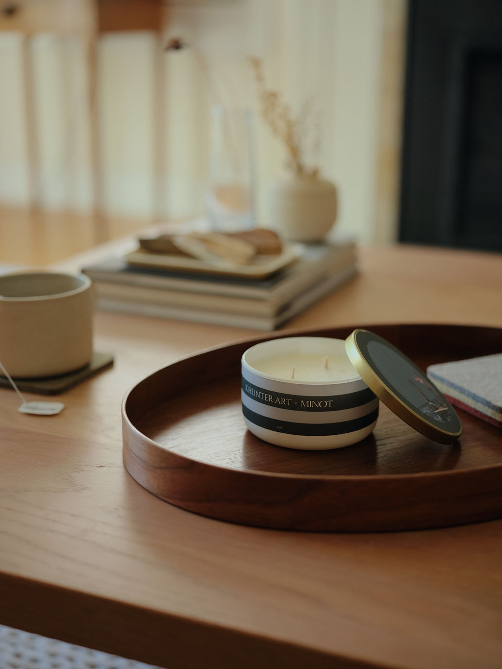 Set sail into the season with our Casting Off Candle, an exclusive collaboration with artist Karla Murphy of K. Hunter Art. This 11oz, two-wick candle captures the crisp, invigorating spirit of autumn by the sea. Notes of bright citrus cut through the cool air, while cedarwood and sandalwood bring grounding warmth—together creating a scent that feels both fresh and moody.